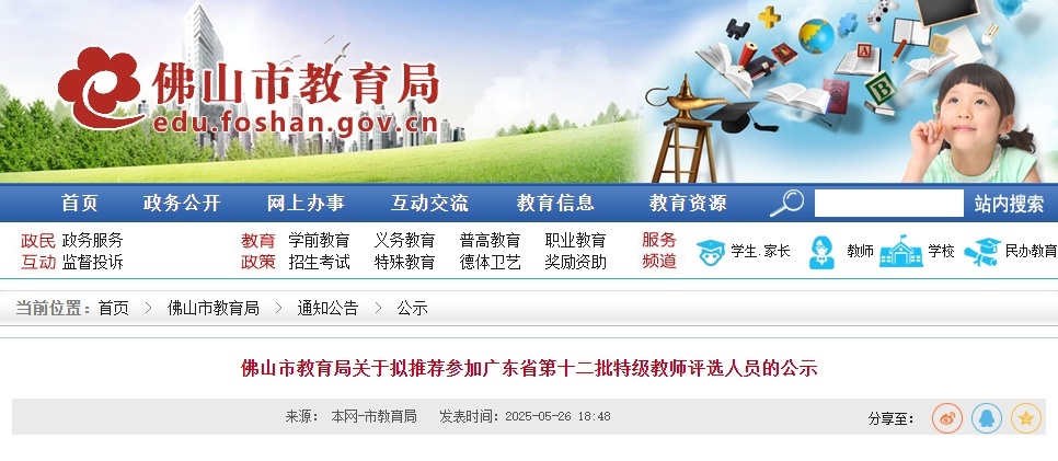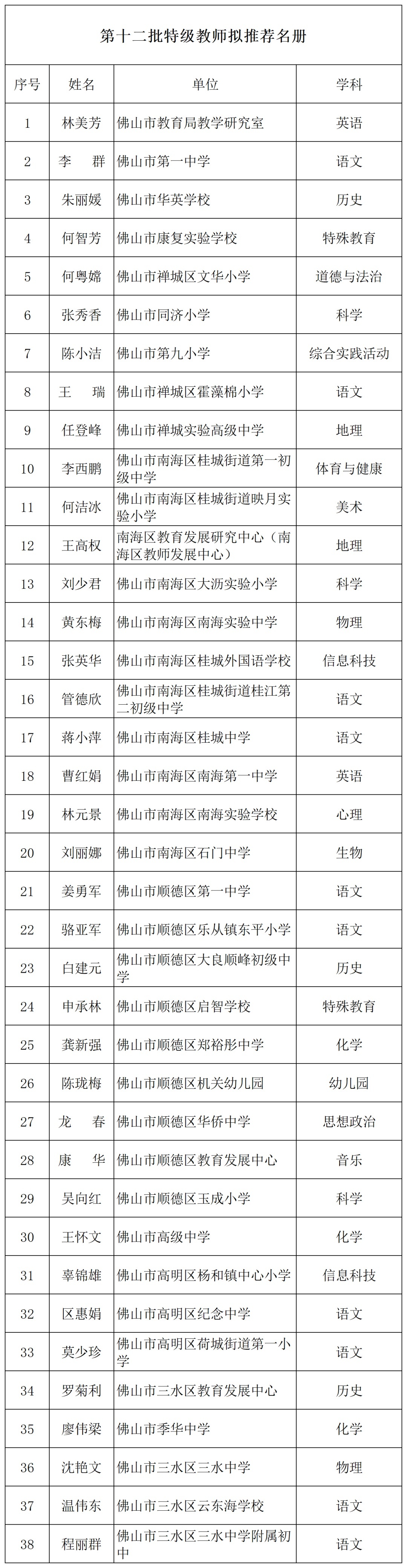 特级教师、南粤优秀教师等奖项拟推荐名单!佛珠惠等8市公示