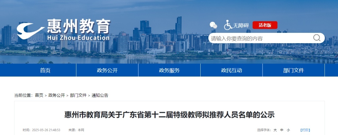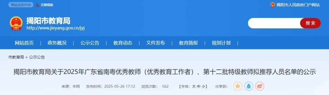 最新消息!珠海、佛山、惠州、揭阳、汕尾、河源、茂名、韶关也开始公示特级教师、南粤优秀教师、南粤优秀教育工作者拟推荐名单啦,一起来看看!