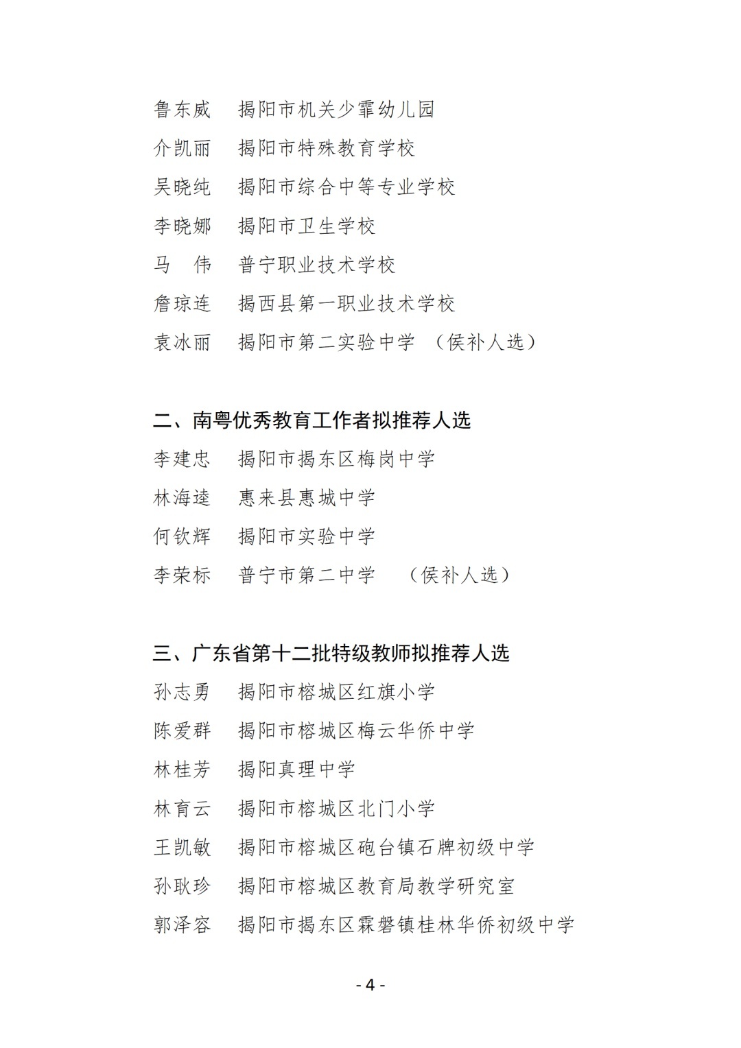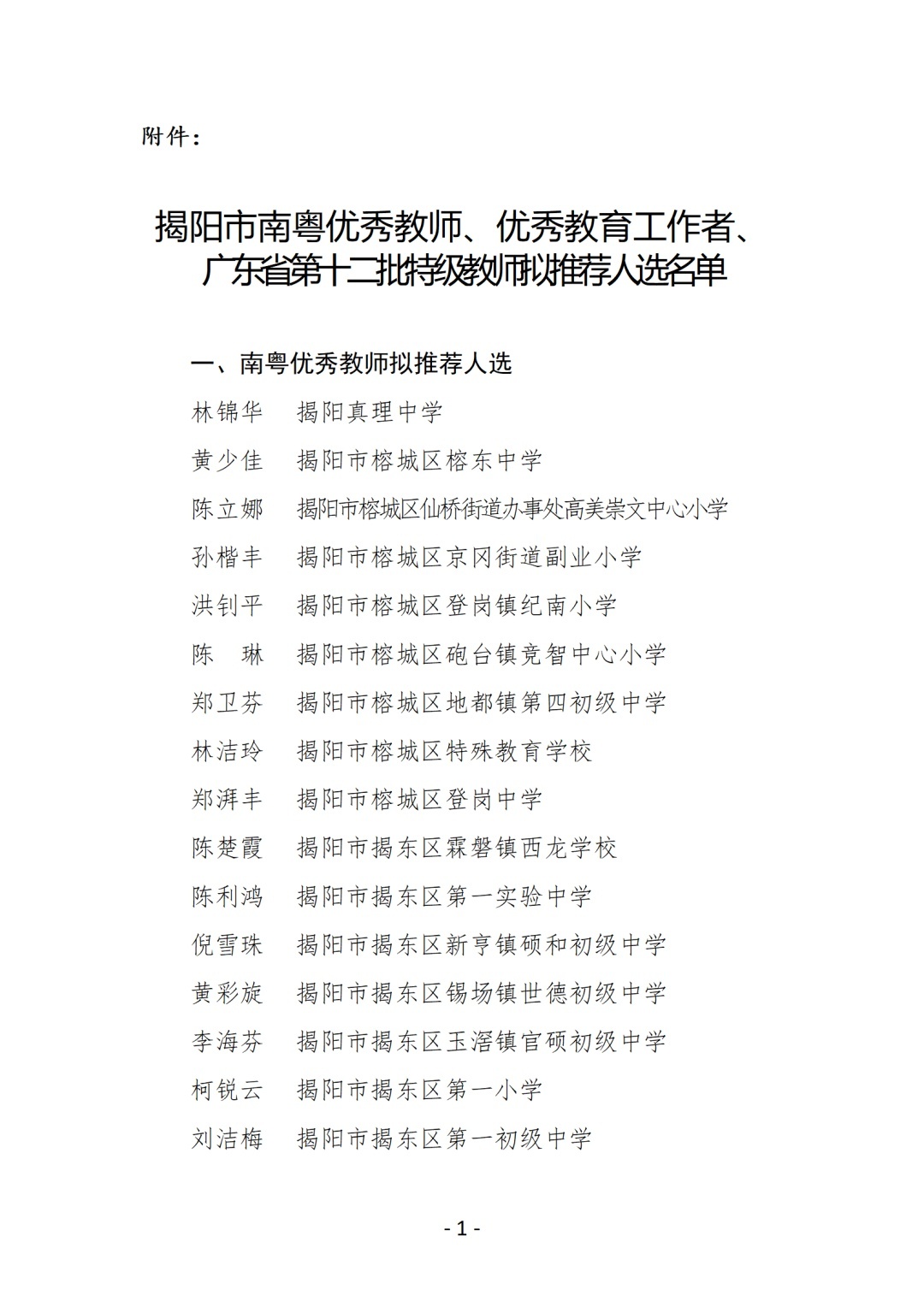 附件:揭阳市南粤优秀教师、优秀教育工作者、广东省第十二特级教师拟推荐人选名单