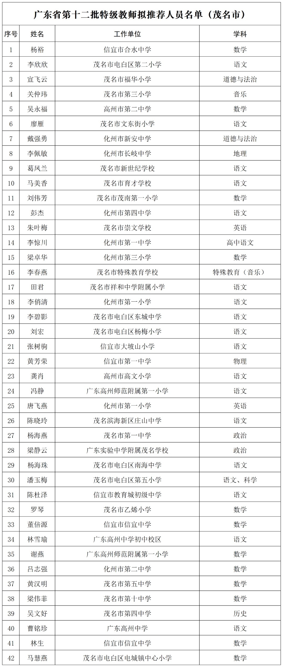 附件:广东省第十二批特级教师拟推荐人员名单(茂名市).xls